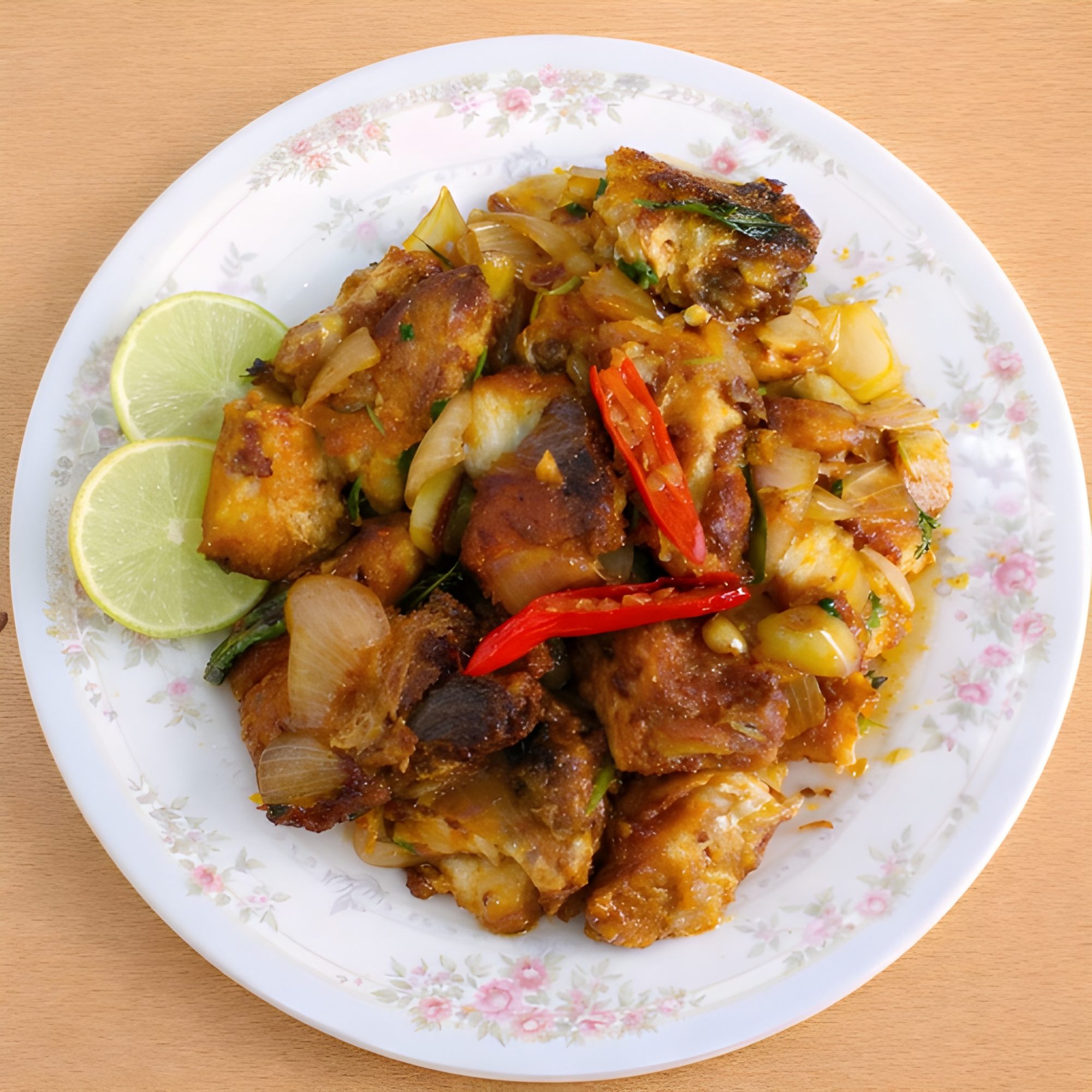 Fish Chilli ist ein würziges, meist indo-chinesisches Gericht aus knusprig gebratenen Fischstücken, die anschließend in einer scharfen Sauce aus Chili, Knoblauch, Ingwer, Zwiebeln, Paprika und Sojasauce geschwenkt werden. Es ist pikant, aromatisch und wird oft als Vorspeise oder mit Reis serviert.