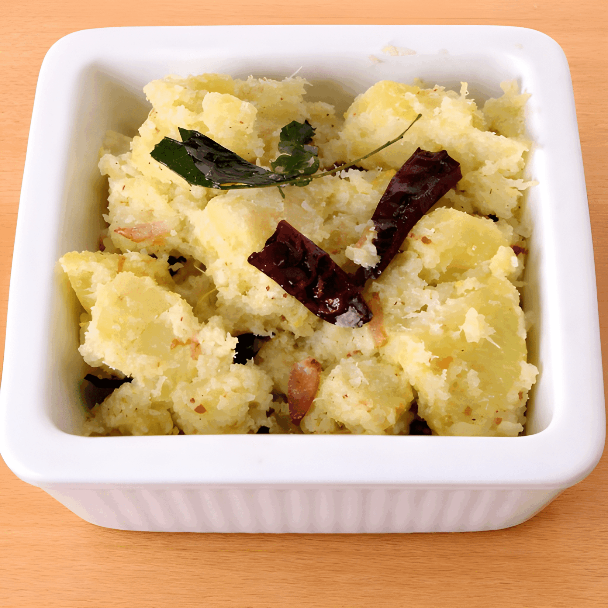 Kappa Vevichathu is a traditional dish from Kerala. “Kappa” means cassava (tapioca) and “Vevichathu” means cooked or mashed. The cassava is cooked, then peeled, mashed, and often served with coconut, spices, or fish curry. It is a simple, filling dish that is especially popular as a side dish to spicy curries.